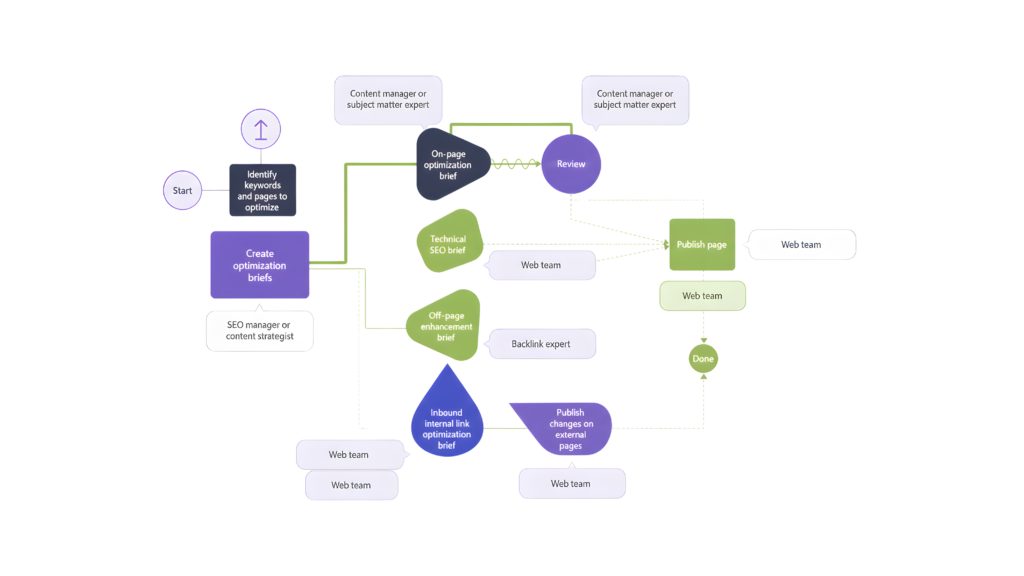 Well-laid-out workflows create consistency in your digital world. Without standard processes, your SEO efforts will scatter between departments and regions.